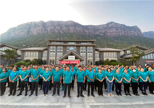 寶泉景區(qū)召開“災(zāi)后重建動員大會”,全體三百余名員工在游客中心廣場激情高呼:攜手同抗災(zāi)、再造新寶泉!