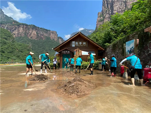 面對洪水過后留下的滿目瘡痍,寶泉景區(qū)不等不靠,全面掀起生產(chǎn)自救、災(zāi)后重建的工作熱潮。