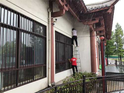 暴雨前夕,芒碭山旅游區(qū)選擇在第一時間閉園并啟動景區(qū)防汛安全預案,及時排查景區(qū)電線電路情況,是否存在山體滑坡等安全問題,對景區(qū)內(nèi)排水設(shè)施進行再次清理,避免大雨造成積水。應急連工作人員利用防水沙袋對景區(qū)地勢較低的門窗進行防水處理,保證臺風過后景區(qū)能盡早對外開放。