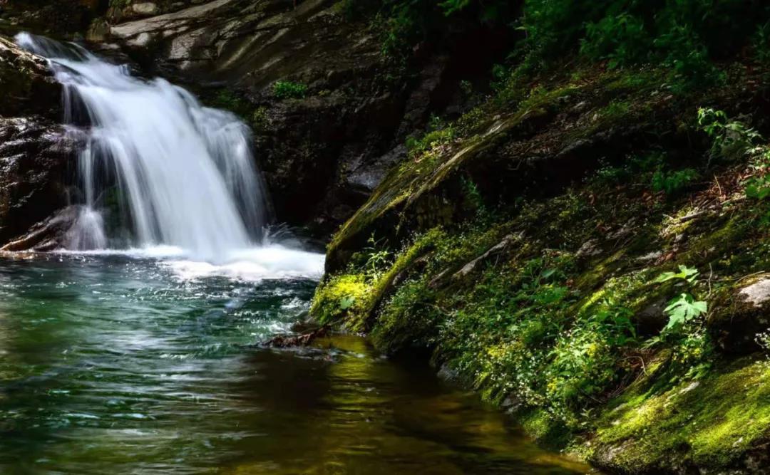 倒回溝是被伏牛山珍藏起來的、用心養(yǎng)育著的子女。多少年來,倒回溝依偎著雄偉的蒼巖,相伴著茂密的植被,戴著火紅的杜鵑花和許多叫不出名字的花兒組成的花環(huán),披掛著一身幽綠的天然簑衣,用潭瀑相連的青山綠水,恬靜地淘洗著山水、花鳥、魚蟲。倒回溝,把它的激情和內心的熱烈、狂放,分明寫在身邊的灘涂和懸崖上。