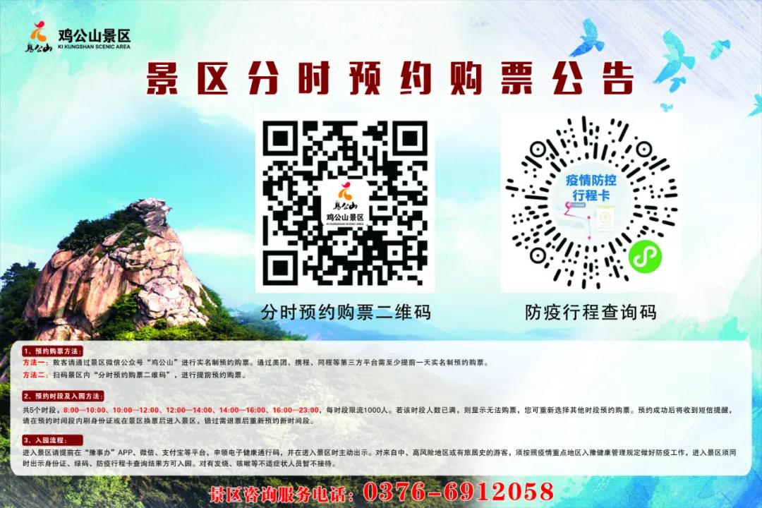 游客可通過景區(qū)官方網(wǎng)站、微信服務號(雞公山)、電話預約等渠道提前購票。