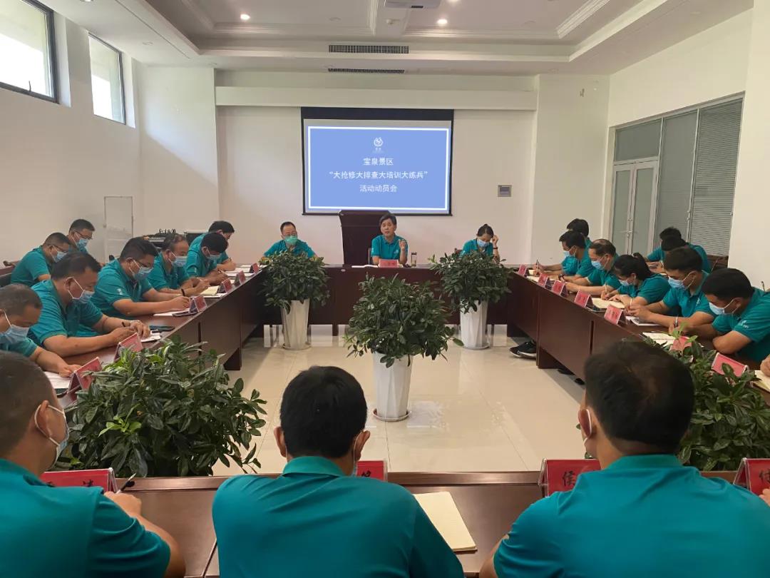 為全面貫徹執(zhí)行河南省文化和旅游廳《關于開展全省A級旅游景區(qū)“大搶修、大排查、大培訓、大練兵”活動》會議精神,寶泉景區(qū)第一時間召開動員大會,對災后重建和疫情防控工作進行再部署、再落實,迅速掀起“大搶修、大排查、大培訓、大練兵”的工作熱潮。