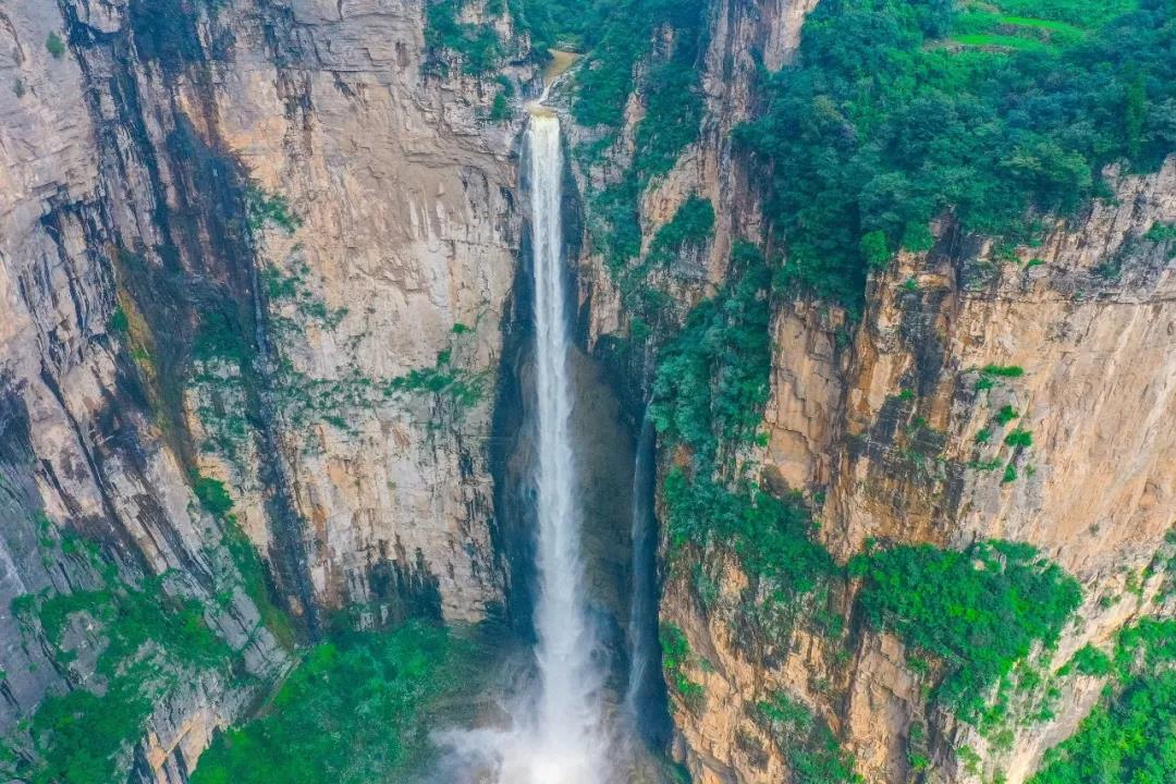 峽谷瀑布自山澗奔流而下,氣壯山河