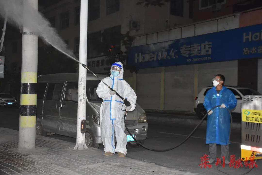 為更加有力有效做好疫情防控工作,切實保障人民群眾身體健康和生命安全,8月11日夜間,按照欒川縣新冠肺炎應(yīng)急處置指揮部統(tǒng)一部署,縣市政園林綠化中心、城市管理執(zhí)法局、衛(wèi)健委、交警隊等單位,組織人員、車輛對城區(qū)內(nèi)的主次干道、背街小巷、公共廁所等公共區(qū)域,開展全城噴灑消毒工作。