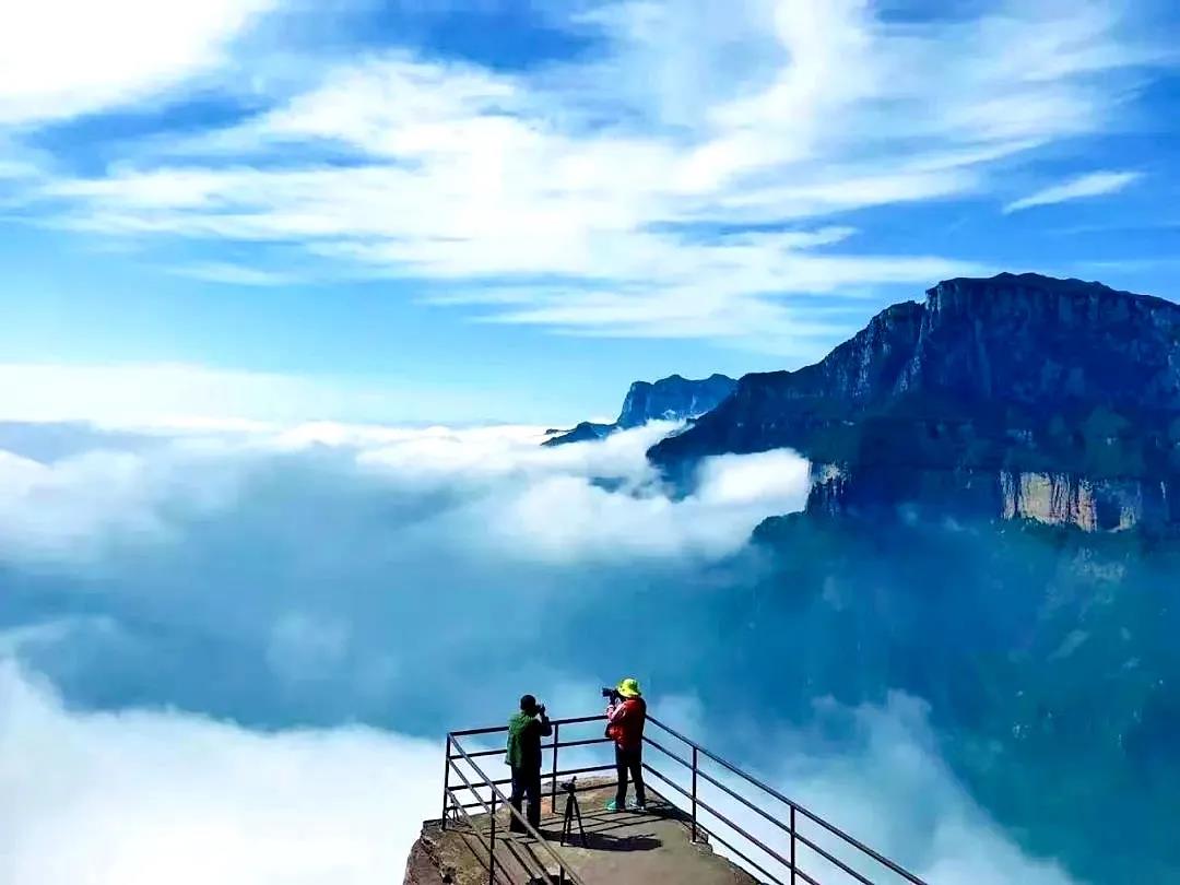 無邊無際的云海出現(xiàn),原本巍峨高聳的山峰一下子變成了“島嶼”,看著翻騰漂移的云海,步入仙境的感覺油然而生。