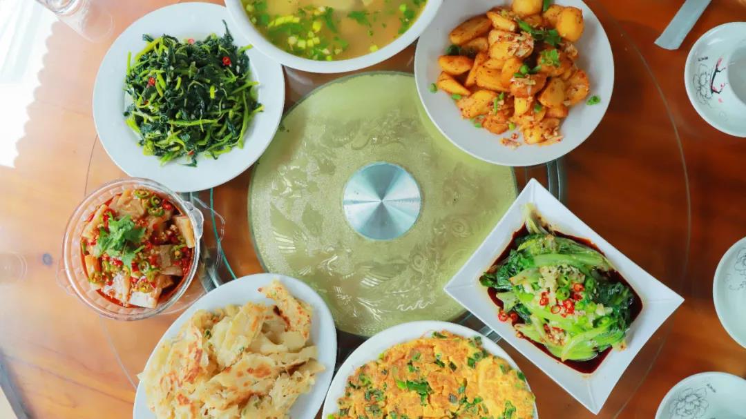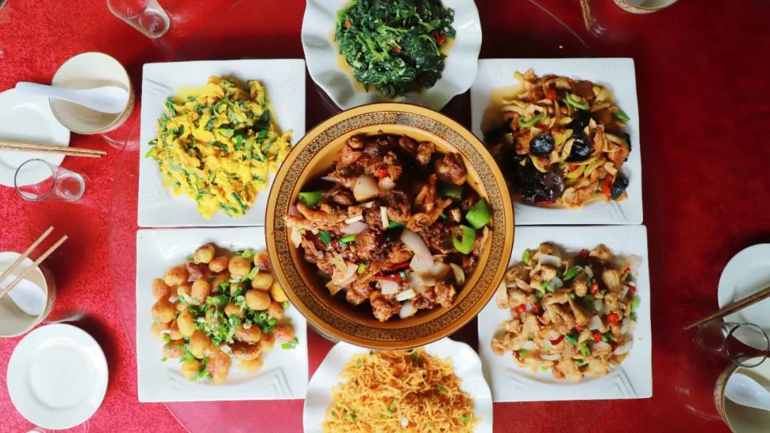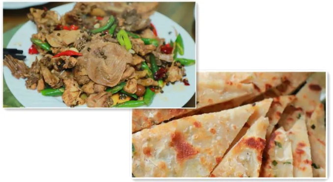炒土雞蛋、手撕烙油饃等。