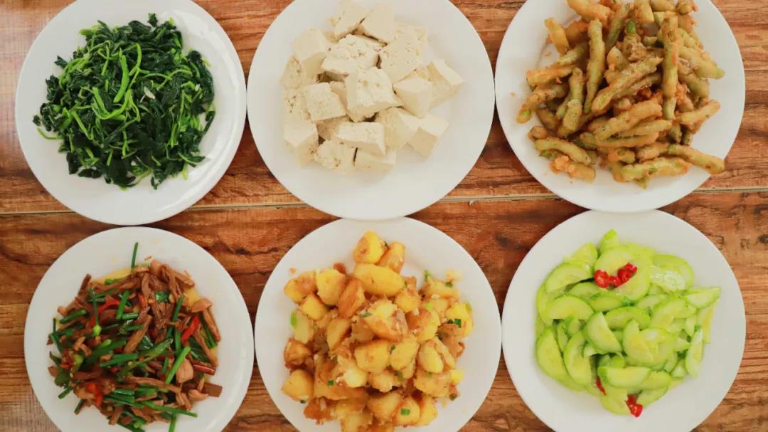 蒸土豆、地黃瓜、養(yǎng)生菜等