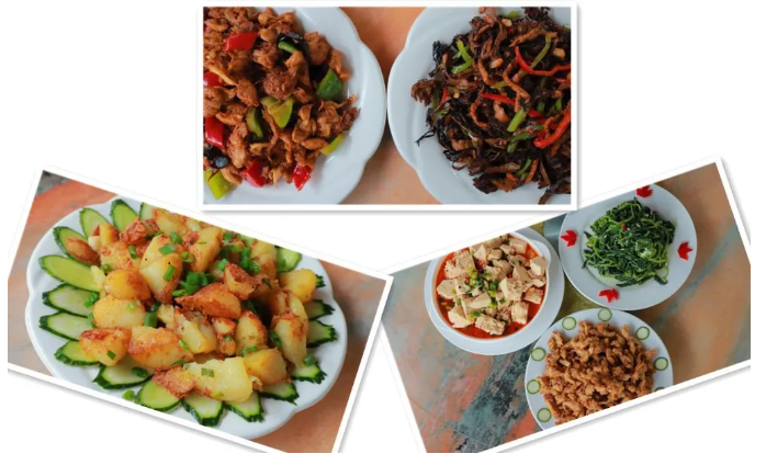 烙土豆、調(diào)豆腐、鹿茸炒肉絲、