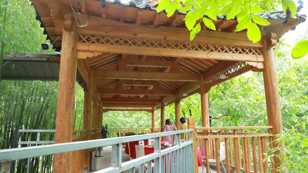 木亭內(nèi)用餐,鳥鳴聲不絕,