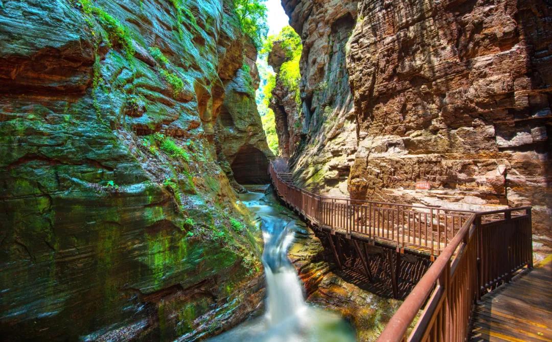 今天小編來講一講龍?zhí)洞髰{谷景區(qū)的第二個(gè)景段:高峽甕谷景段。本景段游覽觀賞的內(nèi)容主要為:清澈見底的水體景觀;流水沖蝕磨蝕后的巖石;幽深的紅石峽谷。聯(lián)合國教科文組織世界地質(zhì)公園評審專家曾盛贊龍?zhí)洞髰{谷是“世界上最美的峽谷”、“全世界人都該來的地方”,主要說的就是這一景段。