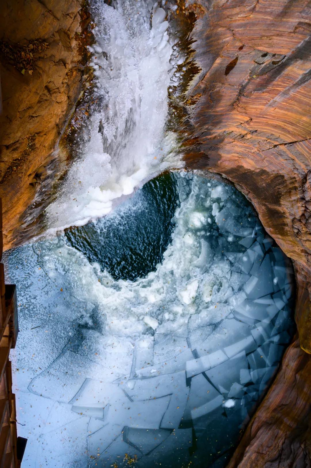 接下來我們看到的是飛龍?zhí),此潭呈圓形,直徑約25米,深約10米,潭后的飛龍瀑高約8米;其潭亦屬壺穴,由飛龍瀑巨大的水流沖蝕、磨蝕而成。飛龍瀑巖崖陡峭、光滑,下有深潭,冬天時(shí)候形成的冰掛奇觀,更是美不勝收!