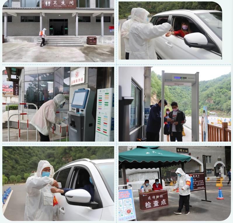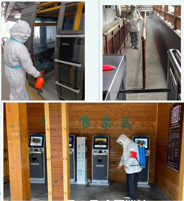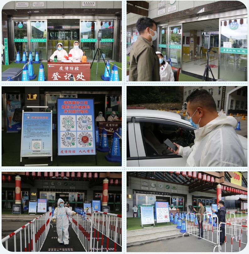為扎實(shí)做好疫情防控工作,確保游客健康安全。老君山景區(qū)嚴(yán)格按照疫情防控要求做好各區(qū)域消殺工作,對(duì)入園游客查驗(yàn)健康碼、行程碼、身份信息、測(cè)體溫、登記信息等一系列嚴(yán)格的程序后,方可入園。同時(shí),利用廣播、電子屏、展板宣傳疫情防控知識(shí),提醒游客遵守疫情防控有關(guān)要求,安全有序游覽景區(qū)。