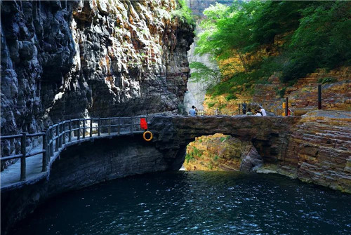 8月27日,林州市太行大峽谷正式開放,也迎來了開放之后的第一批游客。此刻的桃花谷也是一年中最美麗的時候,谷中一條曲折蜿蜒的桃花溪水貫穿而過,沿著山谷流下的溪水,激情過后跌落成瀑,婉約之后落瀑成潭,大大小小的碧潭與銀色瀑布相連,高差近千米,谷內(nèi)草木茂盛,“三步一泉,五步一瀑,十步一潭“的步隨景移的美景,就有了今天宛若仙境的桃花谷。