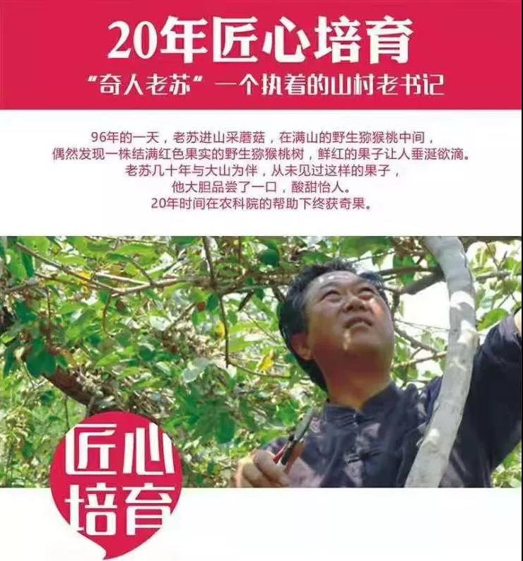 在天下無人認(rèn)識(shí)此物的時(shí)候,蘇建五拎著一袋袋不容易存放的果實(shí),走南闖北,只是為了證明,這是值得與大家分享的好東西。那時(shí)候,沒有公司,沒有企業(yè),他憑借著一己之力上北京、下廣州、跑上海,找遍農(nóng)業(yè)科研機(jī)構(gòu),也走遍了國(guó)內(nèi)各個(gè)獼猴桃產(chǎn)區(qū)調(diào)研比對(duì),最終證明了這是只生長(zhǎng)在洛陽欒川的紅色獼猴桃,其營(yíng)養(yǎng)和維生素含量是普通獼猴桃的數(shù)倍,更可貴的是紅色果肉內(nèi)的花青素含量極高,其保護(hù)心腦血管和防癌、抗癌的保健價(jià)值是其他水果無法比擬的,紅色獼猴桃的發(fā)現(xiàn)和選育填補(bǔ)了國(guó)內(nèi)外獼猴桃科研領(lǐng)域的空白,被譽(yù)為“欒川仙果”、“生命之果”。