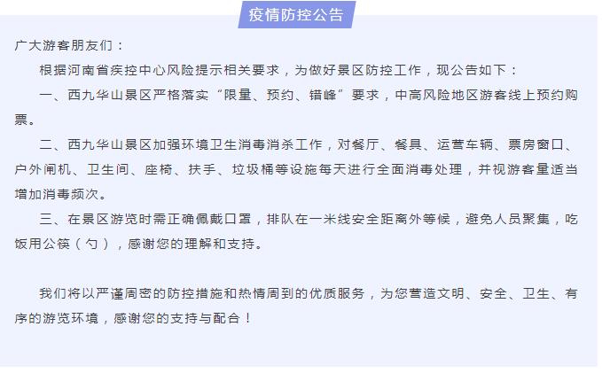 在嚴格落實各項疫情防控工作的前提下,西九華山中原竹寨夜場光影秀8月31日起恢復(fù)對外開放,營業(yè)時間為:19:00—22:00。感謝您一如既往的支持,疫后相約,更加精彩!