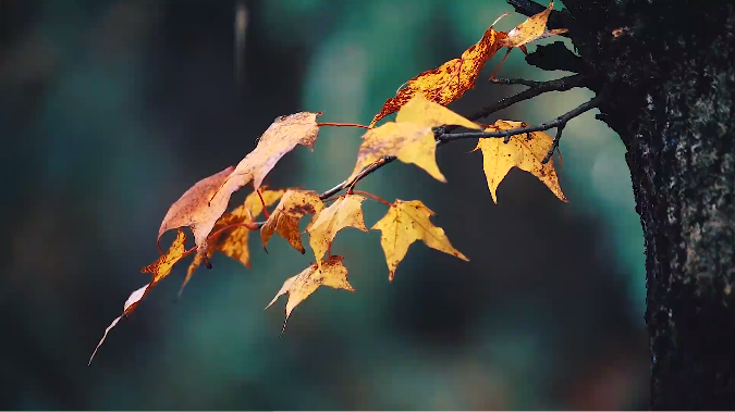 有枝頭紅透的楓葉