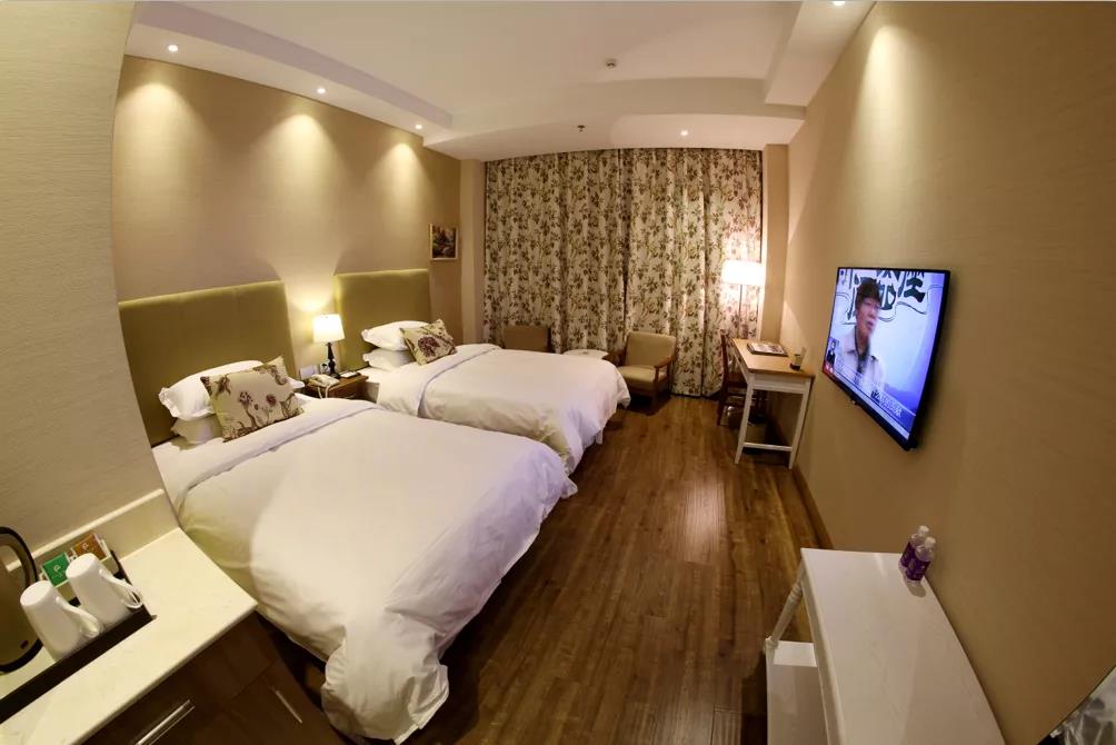 房間配置:2張1.2米床,獨(dú)立衛(wèi)生間干濕分離24小時(shí)熱水,有線電視,房間WIFI,含早餐,有窗。