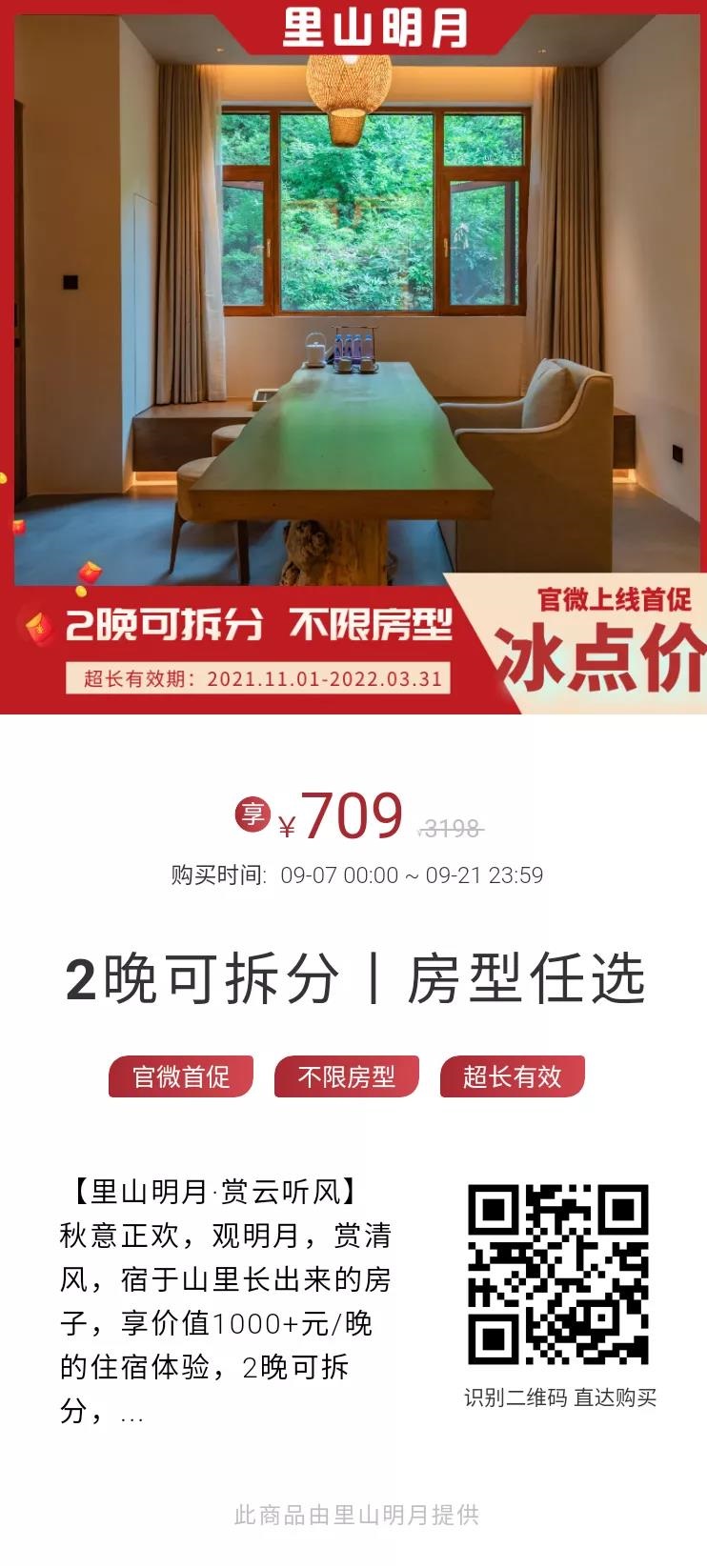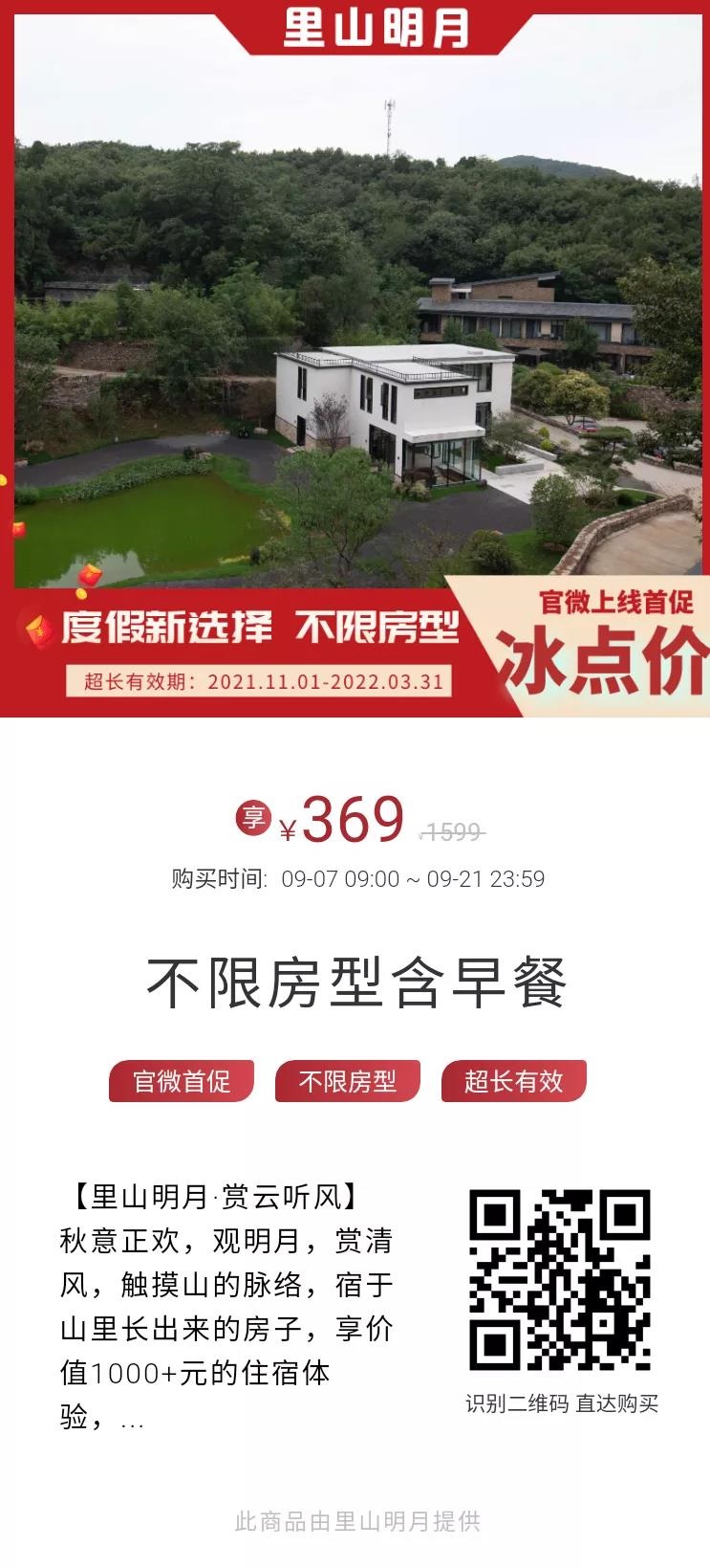 在這個(gè)秋天,里山明月準(zhǔn)備了超值的套餐優(yōu)惠,超低價(jià)格獨(dú)享秋日山居。掃描下方圖片二維碼預(yù)約,入住前需至少提前三天致電預(yù)訂房間。