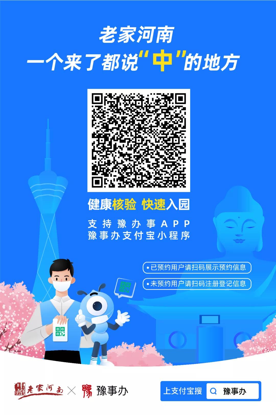 游客朋友們可以通過(guò)支付寶掃碼“河南文旅預(yù)約健康碼"預(yù)約后通過(guò)官方公眾號(hào)、美團(tuán)、攜程、現(xiàn)場(chǎng)自助掃碼、刷臉購(gòu)票等方式實(shí)行線(xiàn)上實(shí)名購(gòu)票參觀游覽。