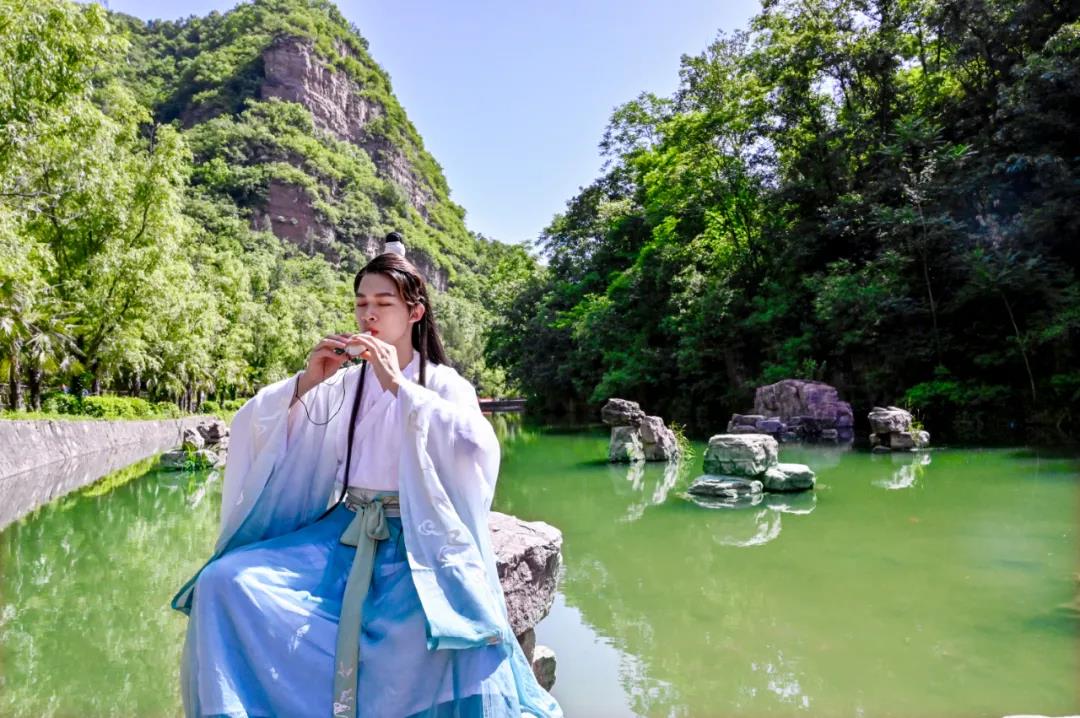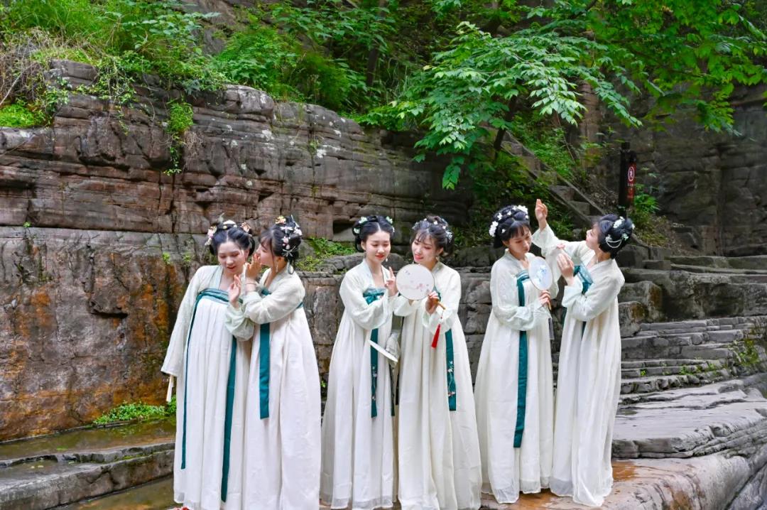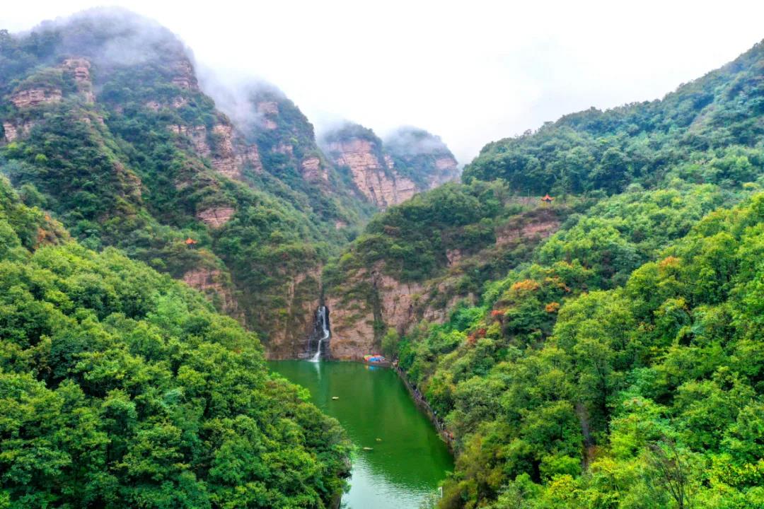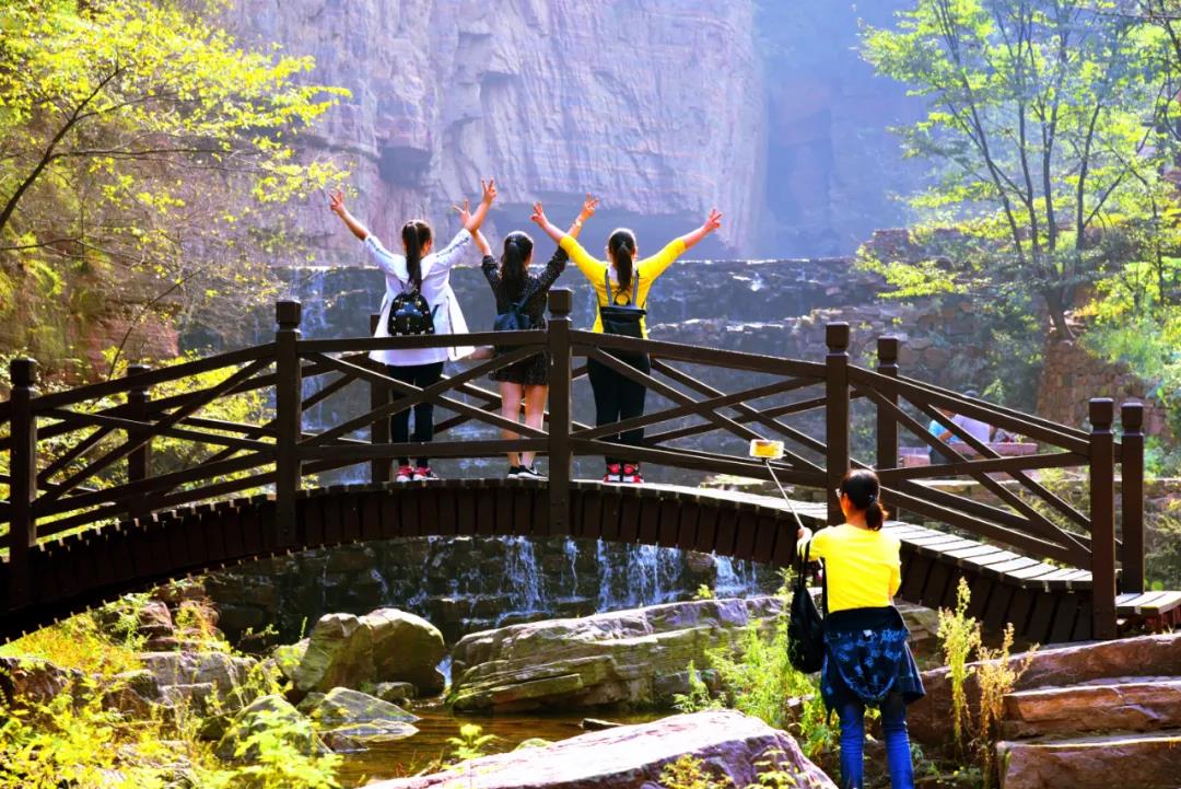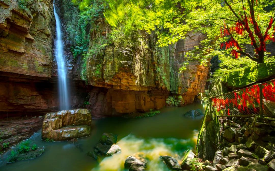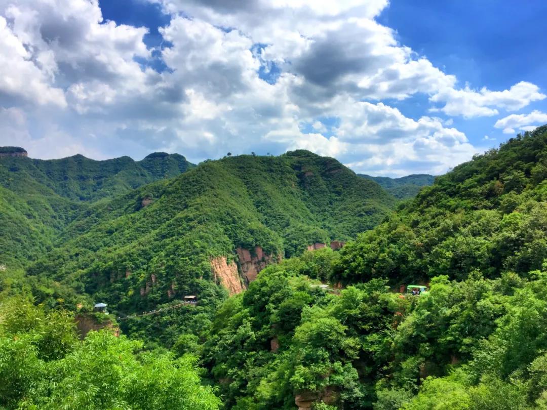 綠色是龍?zhí)洞髰{谷必不可少的色彩,嫩綠、翠綠、墨綠......漫山遍野的樹林,連綿起伏的山峰,滿眼的綠色仿佛在空氣中流動。