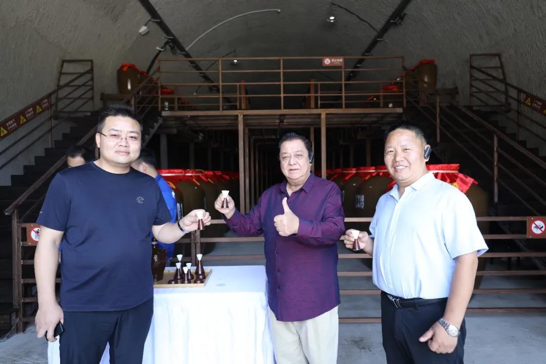 觀彩虹花田,覽翠黛仙山,李金斗先生一行首站直奔仰韶酒莊的生態(tài)洞藏基地——陶香洞天。大門緩啟,千噸萬壇紅蓋頭酒甕映入眼簾。醇厚濃郁的酒香撲面而來,一時間,風(fēng)吹酒香,心隨風(fēng)動。