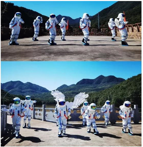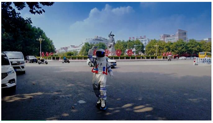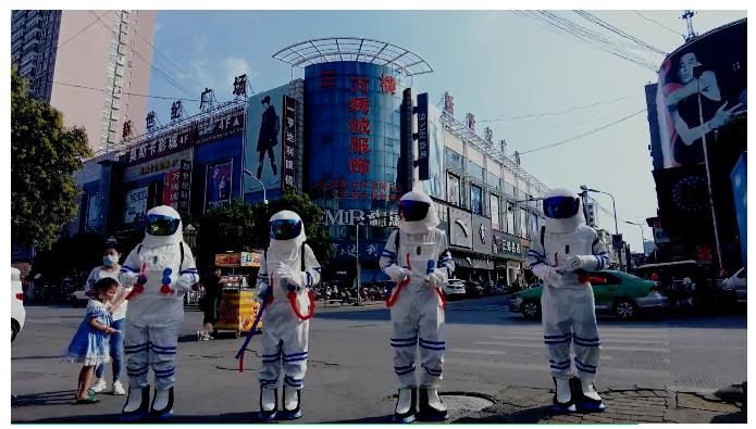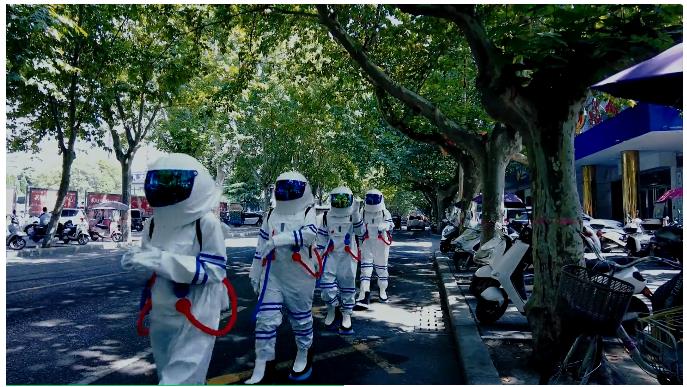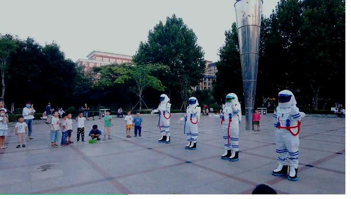在某個廣場有一群神秘人,他們在做什么?哦,原來是“宇航員”過來給我們送驚喜了!