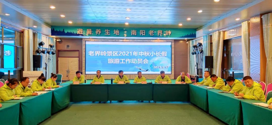 為做好中秋小長(zhǎng)假期間旅游接待工作,給廣大游客營(yíng)造歡樂(lè)、安全、祥和的節(jié)日氛圍,9月17日,老界嶺景區(qū)召開(kāi)了2021年中秋小長(zhǎng)假旅游工作動(dòng)員會(huì),景區(qū)中層以上管理人員參加會(huì)議。