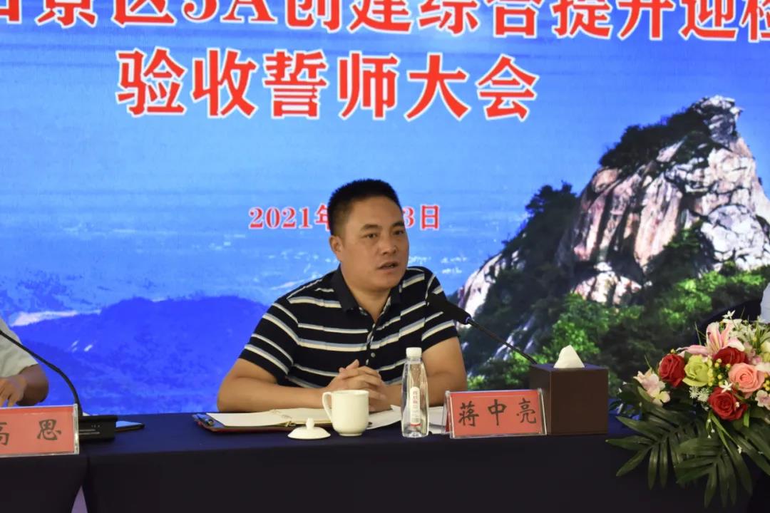 雞公山管理區(qū)旅游文化局局長(zhǎng)蔣中亮對(duì)5A創(chuàng)建工作作出指導(dǎo)。他表示,雞公山在創(chuàng)建工作中,歷時(shí)5年,跨度大,難度大,5年前的雞公山不論是外部環(huán)境還是管理服務(wù)和現(xiàn)在的雞公山對(duì)比,如今的雞公山給人一種耳目一新的感覺(jué),外來(lái)領(lǐng)導(dǎo)專家學(xué)者都對(duì)今天的變化做出了肯定。緊接著蔣中亮同志對(duì)如何迎檢和如何做好迎檢工作提出指導(dǎo)。一在思想上要高度重視迎檢,要把迎檢任務(wù)作為常態(tài)化,把每一個(gè)游客都當(dāng)成檢查專家。工作上要正確認(rèn)識(shí)迎檢,工作就是迎檢,迎檢就是工作。平時(shí)的工作要扎實(shí),創(chuàng)建不是終點(diǎn)而是起點(diǎn)。行動(dòng)上要關(guān)注迎檢工作的痛點(diǎn),對(duì)專家組進(jìn)行檢查時(shí)指出的薄弱環(huán)節(jié)要加強(qiáng)。宣傳氛圍要加強(qiáng)、引導(dǎo)服務(wù)要主動(dòng)、游客中心各板塊都要重視起來(lái)、巴士,觀光車溫馨提示要到位、景點(diǎn)管理要熱情規(guī)范、安全提醒要及時(shí)、衛(wèi)生垃圾要日產(chǎn)日清。二要提升服務(wù)質(zhì)量,創(chuàng)立三先服務(wù)意識(shí);持續(xù)提升服務(wù)水平,疫情管控做到位;持續(xù)優(yōu)化經(jīng)營(yíng)秩序;持續(xù)開展環(huán)境整治。全員齊心協(xié)力創(chuàng)建5A。