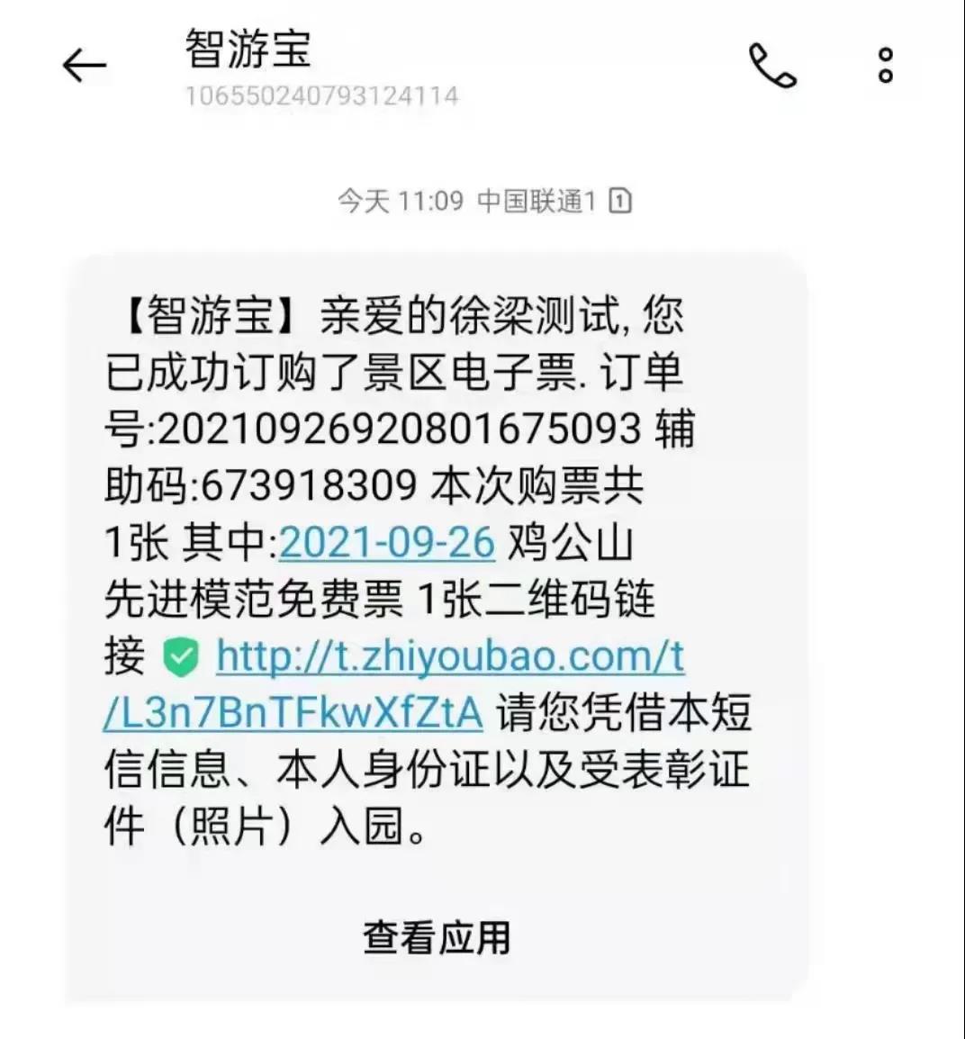 5、保存短信,憑本條短信、身份證及受表彰證件入園