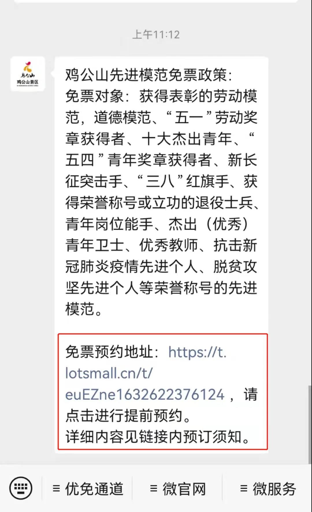 凡屬享受上述優(yōu)惠政策人員,可通過"雞公山"服務(wù)號進(jìn)行實名網(wǎng)上預(yù)約,景區(qū)將由專人對接服務(wù),現(xiàn)場憑本人憑身份證和自己的獲獎身份證明即可免費入園。