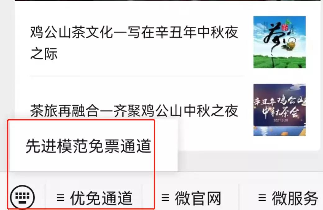 1、進(jìn)入“雞公山”服務(wù)號——優(yōu)免通道