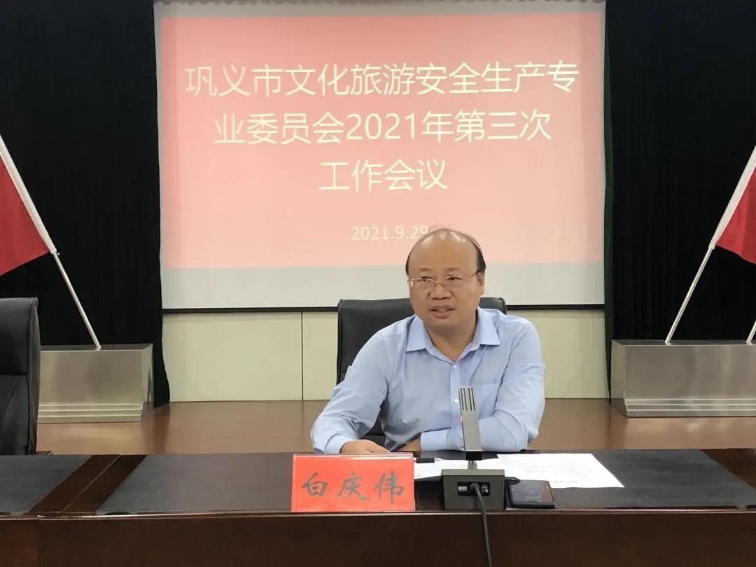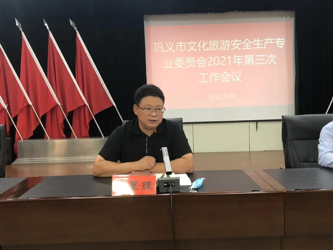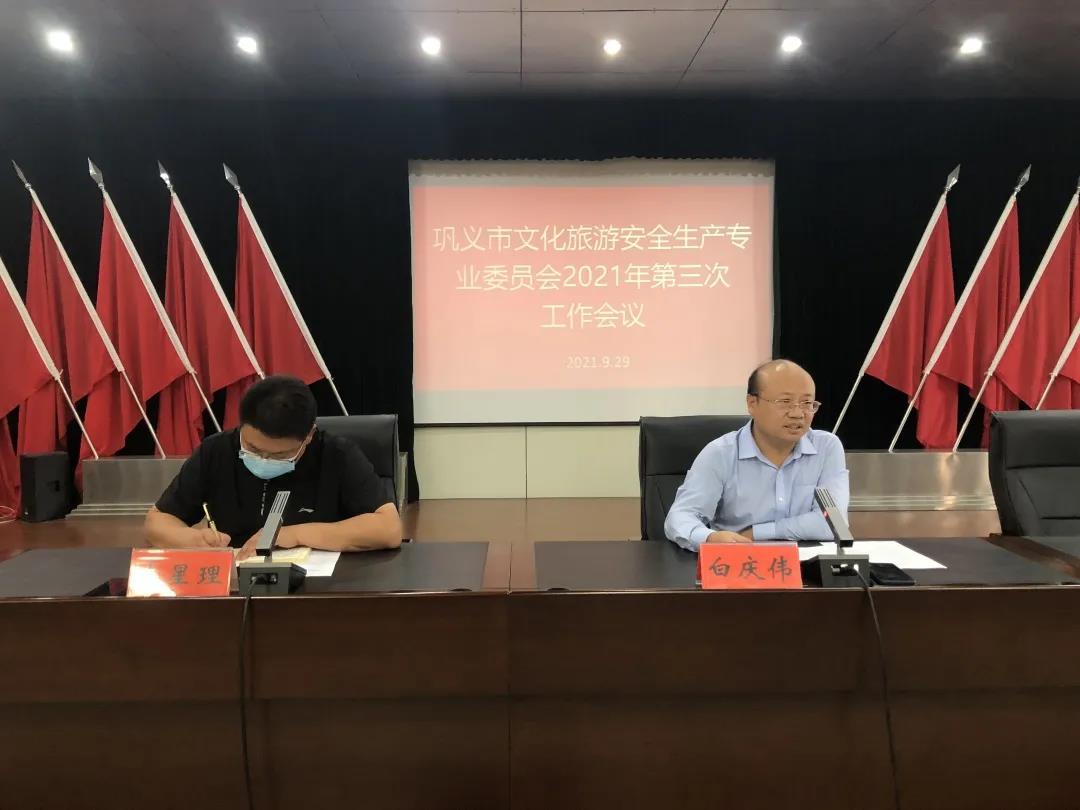 9月29日下午,在鞏義市文廣旅體局六樓會議室,市政府辦副主任白慶偉受副市長景曉明委托,主持召開全市文化旅游安全生產專業(yè)委員會2021年第三次工作會議,對“十一”黃金周假日文化旅游市場安全生產工作進行安排部署。文廣旅體局、公安局、資源規(guī)劃局、市場監(jiān)管局、交通局、衛(wèi)健委、消防救援大隊,20個鄉(xiāng)鎮(zhèn)、街道等成員單位有關負責同志,以及A級景區(qū)、文博場館負責人共42人參加會議。