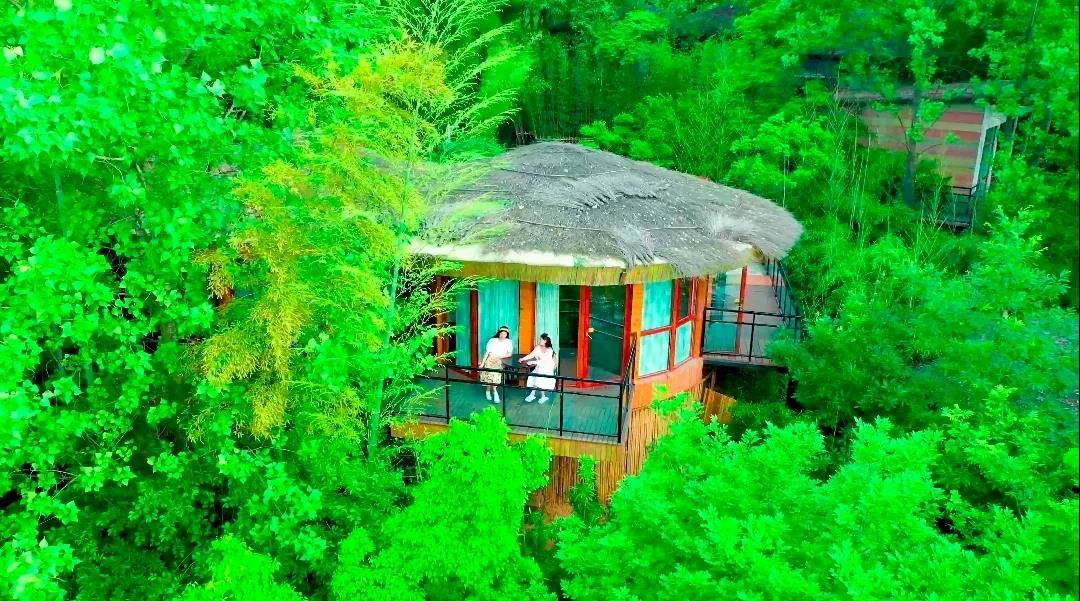 門前是白鷺湖,周邊是竹林,圓形民宿絕對是一處依山伴水的風(fēng)水寶地。