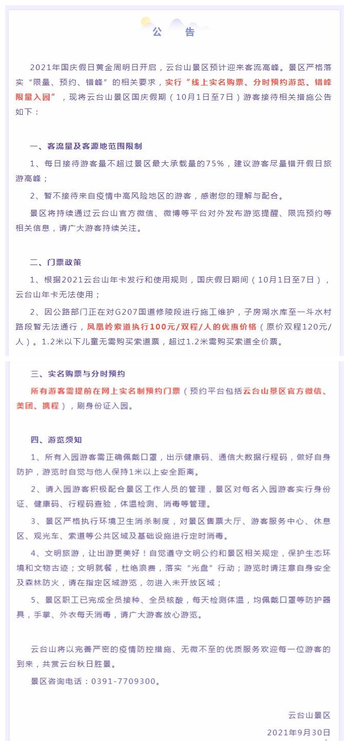 國慶假期,云臺(tái)山“限量、預(yù)約、錯(cuò)峰”公告