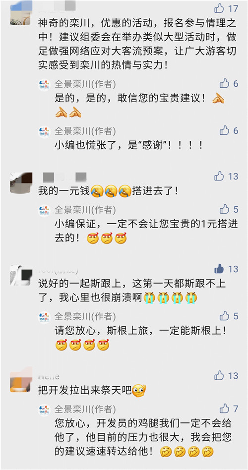 “1元游欒川”惠民活動(dòng)自9月10日開啟后,盲盒的趣玩形式即可引燃了游客們的好奇心,開啟那一刻,系統(tǒng)顯示1秒進(jìn)入6000余人次,1分鐘達(dá)到幾十萬人次,這熱情讓活動(dòng)組委會(huì)沒有預(yù)料到,系統(tǒng)崩潰調(diào)整后又重啟,前三天,系統(tǒng)一直處于超負(fù)荷運(yùn)行,之后才逐漸正常。這開啟之時(shí)雖有曲折,但也說明了一點(diǎn),這個(gè)活動(dòng)本身的吸引力足夠大。