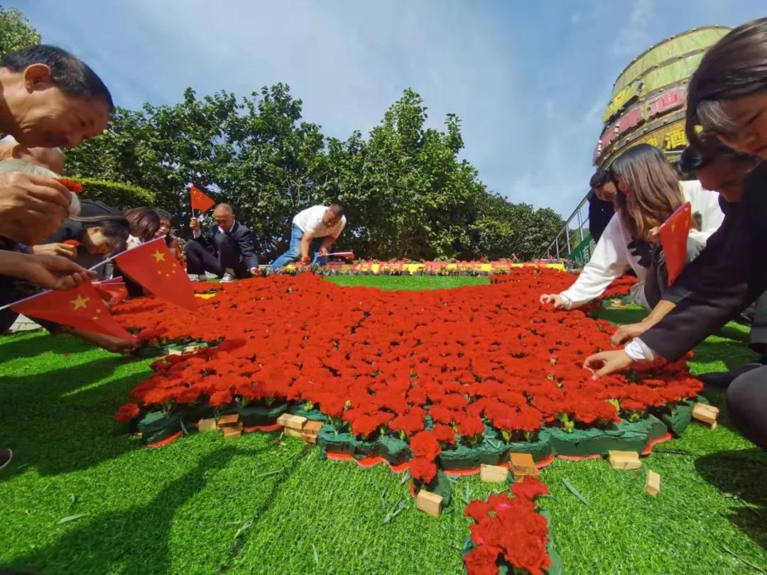 造型主要以“中國紅”為主體顏色,游客們用最鮮艷的鮮花向祖國母親真情告白,祝福祖國繁榮昌盛。造型地圖的右側(cè),是一面“祖國,我想對您說”主題留言墻,在這里游客們留下了千言萬語對祖國母親深深的祝福,體現(xiàn)滿腔的愛國之情。