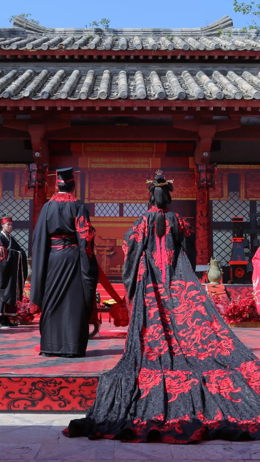 周朝的婚禮端正莊重,不像后世那樣吹嗩吶打鼓一片喜慶,整個(gè)過(guò)程都是在嚴(yán)肅的氛圍中進(jìn)行,因此,周朝的喜服也采用了代表莊重的黑色,讓人覺(jué)得肅穆起敬,不可兒戲。
