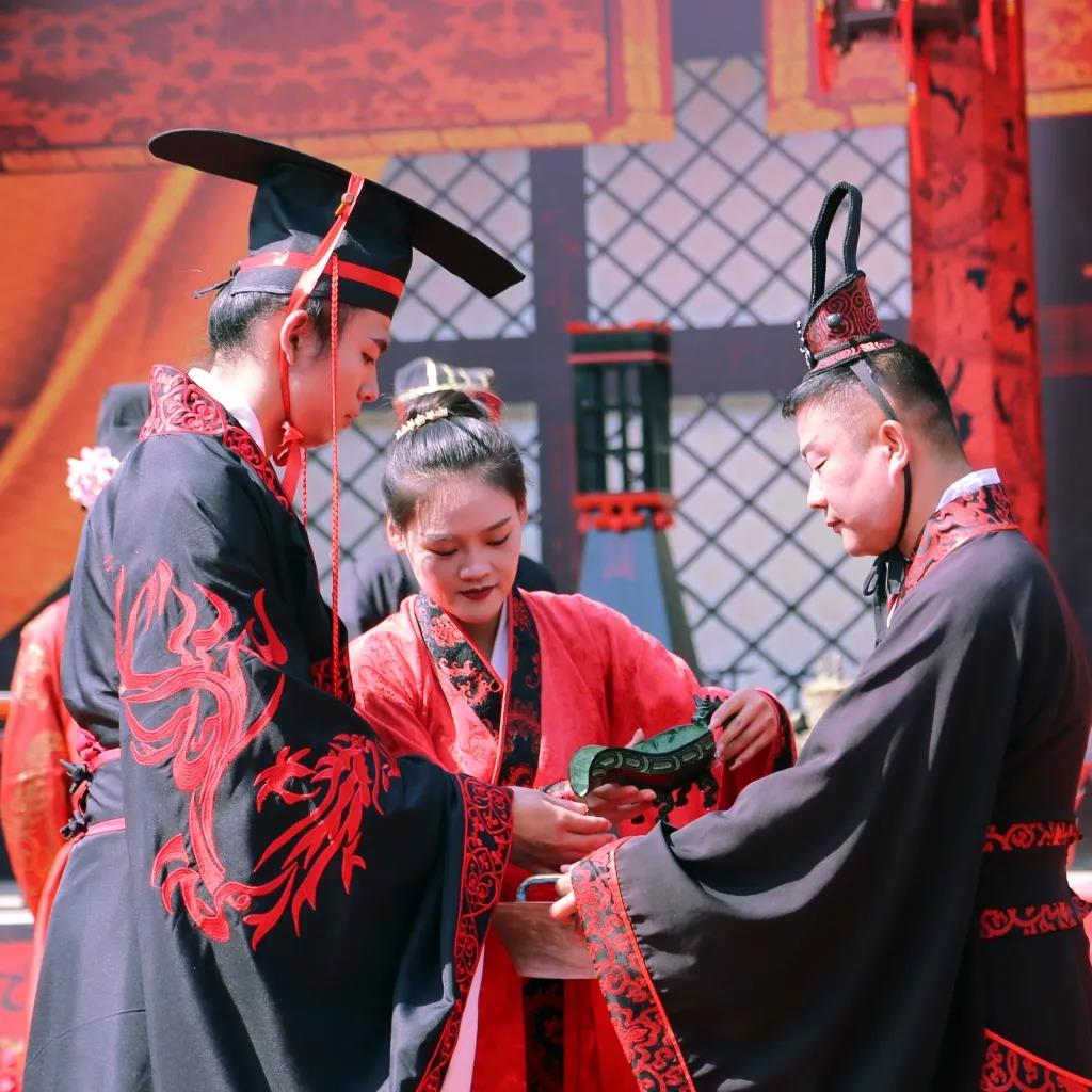 漢式婚禮以典雅、尊貴、莊敬為氣韻,同新人之間堅(jiān)貞、深沉的情感相般配,能夠真正體現(xiàn)華夏經(jīng)典文化傳統(tǒng),被視為禮樂(lè)文明的根本、社會(huì)秩序的起點(diǎn)、人與自然陰陽(yáng)相和諧而化生萬(wàn)物的本源。