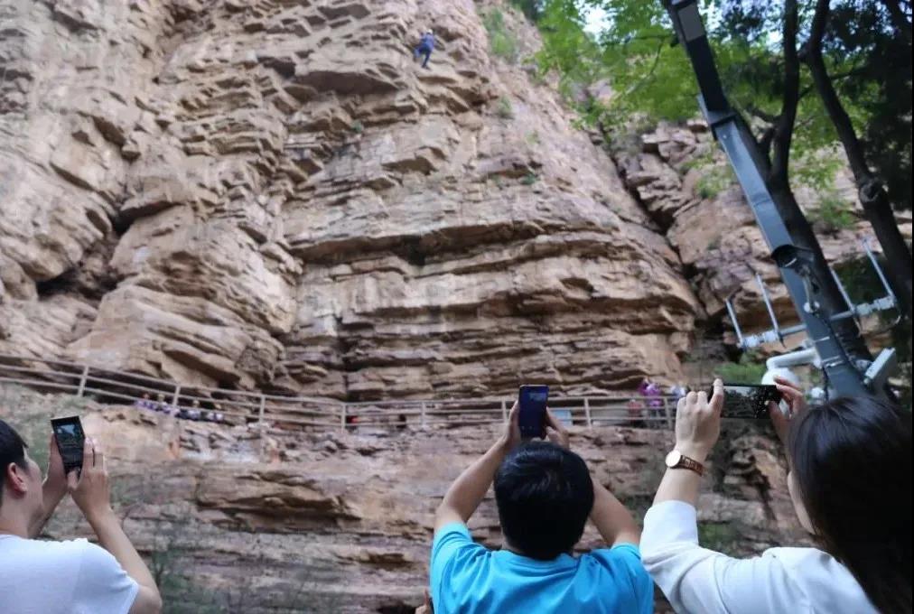 今天,是祖國(guó)母親的生日,游客朋友們?cè)诩t旗渠畔掀起祝福祖國(guó)的熱潮。