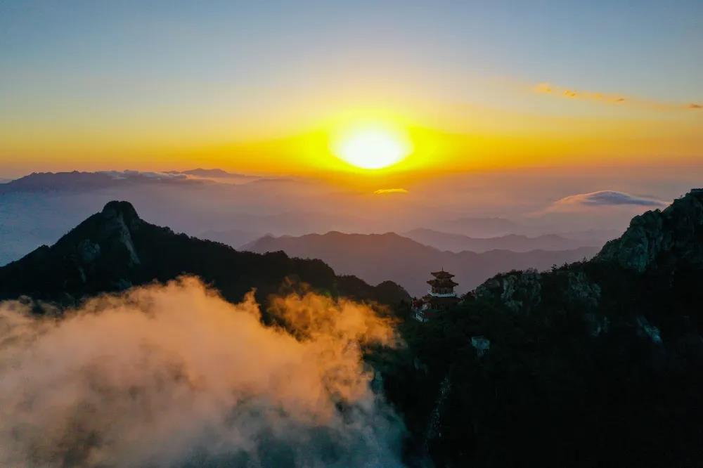 洛陽白云山10月2日早晨,日出、云海齊現(xiàn)。