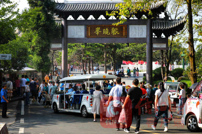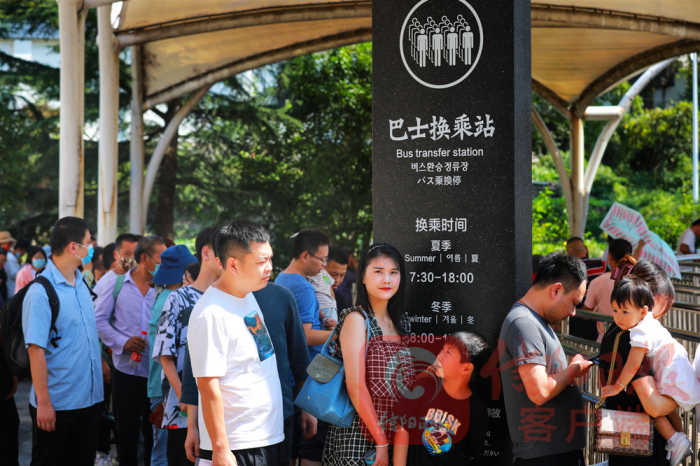 游客正在換乘景區(qū)交通工具。