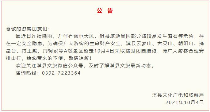 【10月4日】淇縣旅游景區(qū)臨時(shí)閉園公告