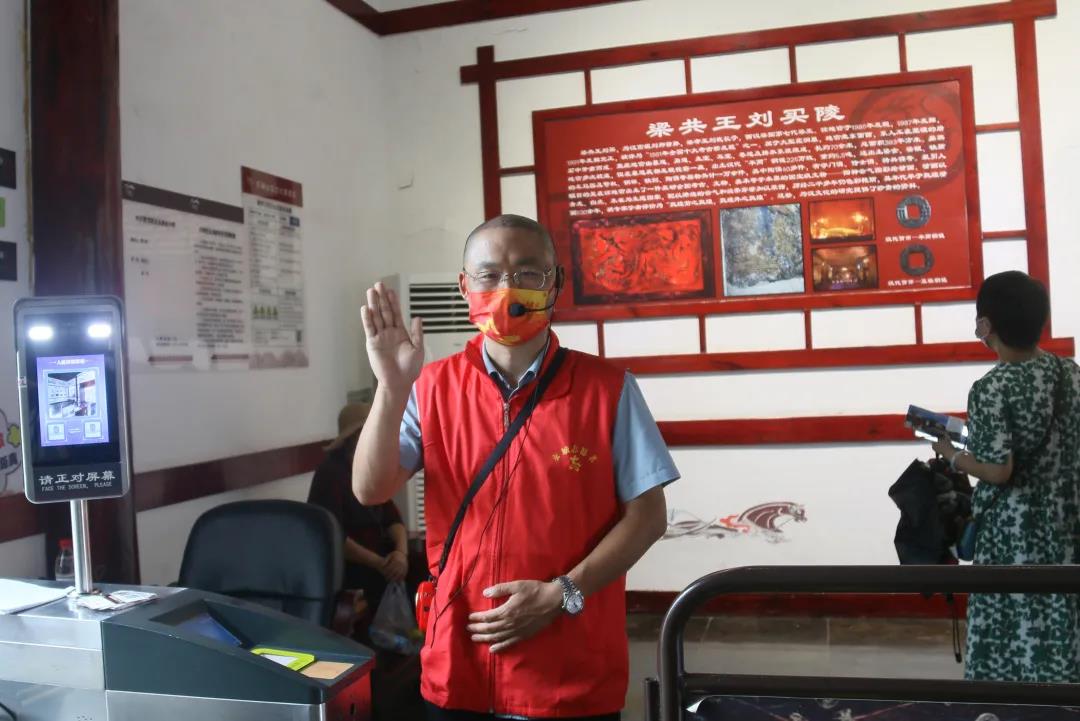 為保障旅游環(huán)境文明和諧,景區(qū)志愿者向游客積極倡導(dǎo)文明旅游,保障旅游秩序,防止文物古跡被人為破壞。