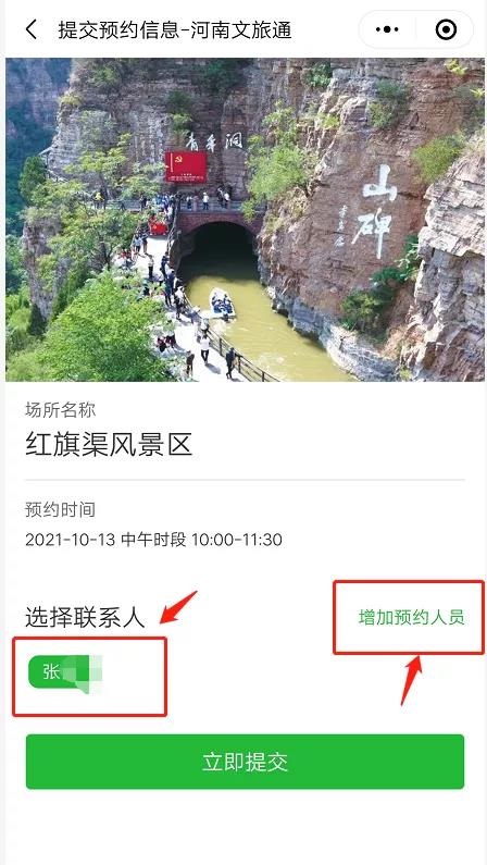 04 選擇聯(lián)系人,增加預(yù)約人員(最多10人),完成后點(diǎn)擊“立即提交”。