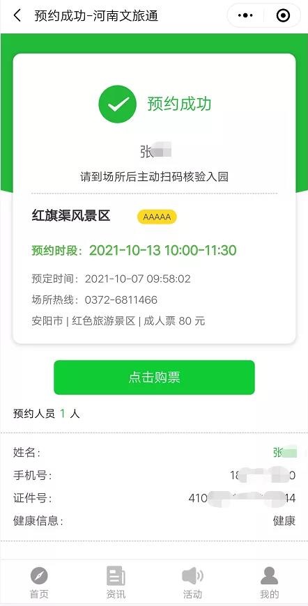05 預(yù)約成功,到景區(qū)現(xiàn)場(chǎng)驗(yàn)證即可。