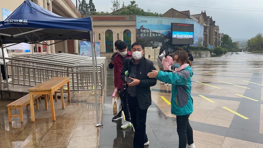 今天是雞公山景區(qū)免費的第一天,小雨,有風,氣溫9°-16°。雖然天氣有點冷,但朋友們游玩的心情很火熱。早早的就有游客身穿雨衣排隊掃碼購買保險入園游玩了。