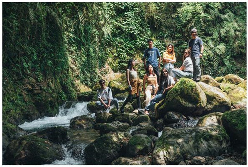 古木參天,白云覆林海,山腰百寶藏蘊,山下流水潺潺,清澈透明,浪花點點,令人神馳。