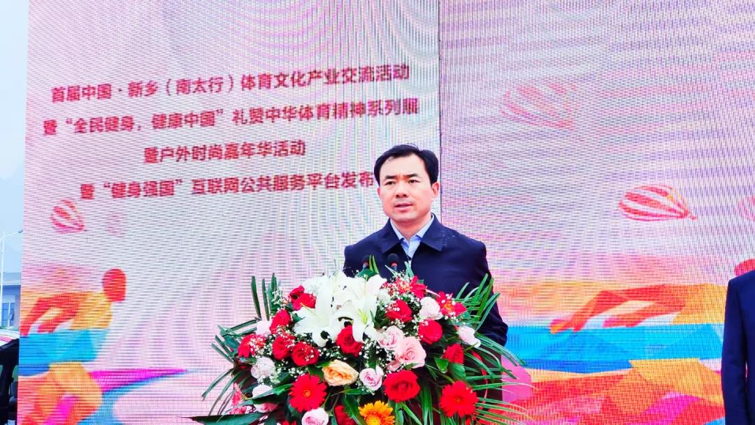 河南省體育局局長萬旭宣布首屆中國·新鄉(xiāng)(南太行)體育產(chǎn)業(yè)、體育文化、戶外時尚運動嘉年華系列活動開幕。
