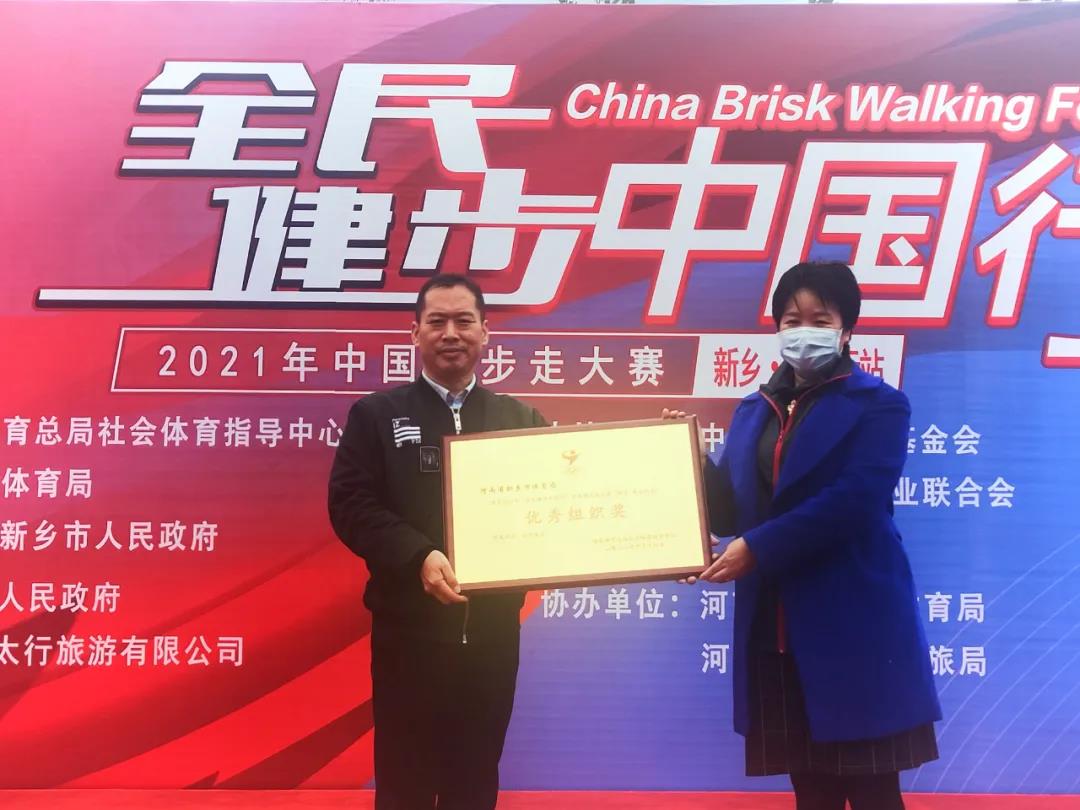 比賽結(jié)束后,與會領(lǐng)導(dǎo)為獲得優(yōu)秀組織獎的新鄉(xiāng)市體育局,獲得突出貢獻獎的新鄉(xiāng)南太行旅游有限公司進行了頒獎,并為完成比賽的運動員頒發(fā)了獎牌和證書。