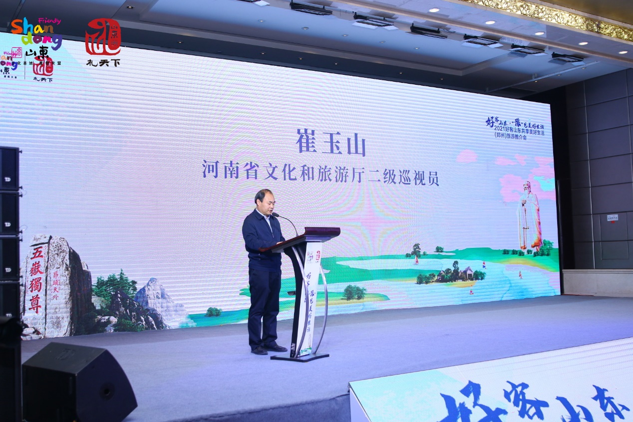 為激發(fā)文旅消費(fèi)活力,進(jìn)一步開發(fā)和拓展沿黃主要省市客源市場,增強(qiáng)區(qū)域合作與聯(lián)動,山東省文化和旅游廳特別走進(jìn)河南策劃了本次推介。山東省文化和旅游廳二級巡視員王春生在致辭中提到,山東與河南,自古地緣相近,山水相連,人文相親,相近的文化淵源與互補(bǔ)的旅游資源,使兩省長期互為全國旅游版圖中重要的客源地和目的地,以文旅為紐帶的交流不斷深化。